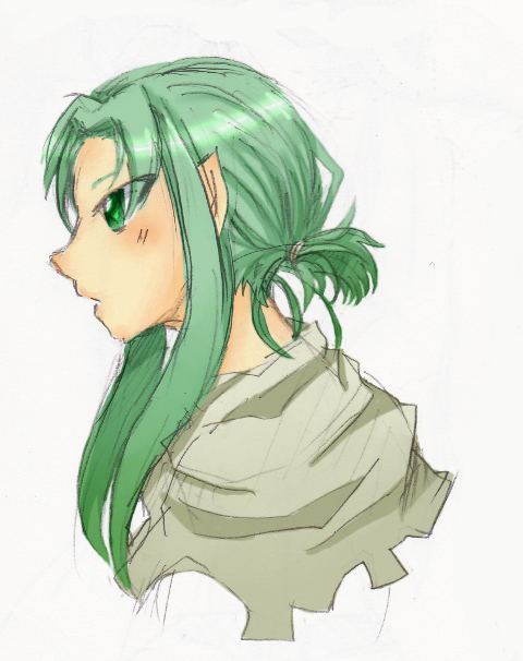 エルフで、もちろん耳尖ってて、白髪で弓矢持ってて服が全体的に緑で